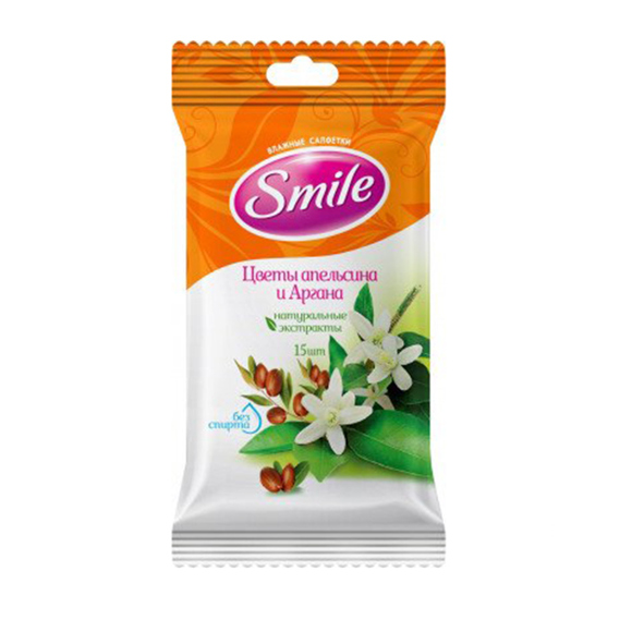 სველი ხელსახოცი Smile, ფორთოხალი და არგანა,15ც